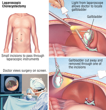 Hampir 90 persen pasien yang menginginkan pengobatan untuk batu empedu mereka menjalani jenis operasi yang disebut kolesistektomi laparoskopi. Dalam prosedur ini, ahli bedah menggunakan lampu kecil dan kamera ditempatkan melalui sayatan kecil ke perut Anda. Kamera yang disebut laparoskopi, memungkinkan ahli bedah untuk melihat apa yang sedang dia lakukan selama operasi dengan menonton layar video.